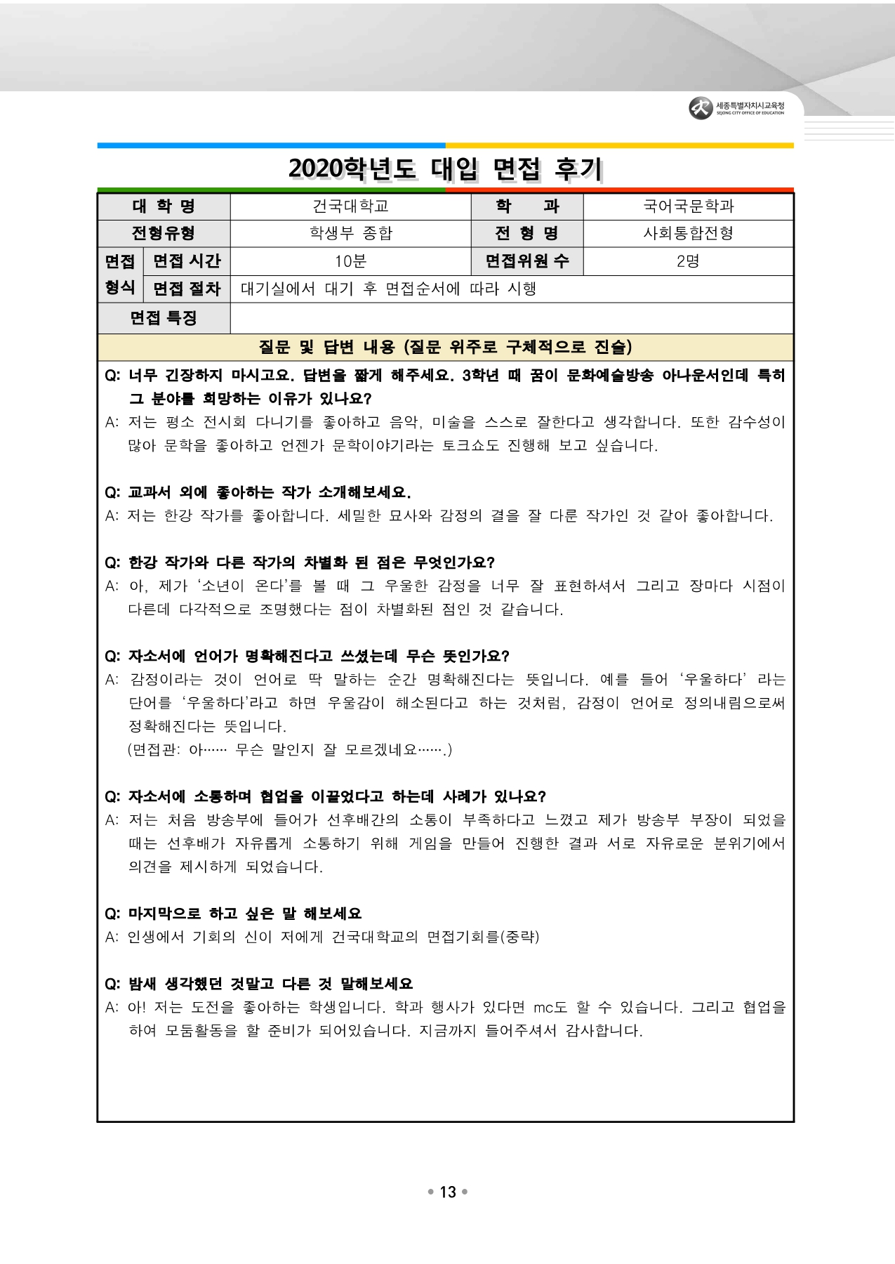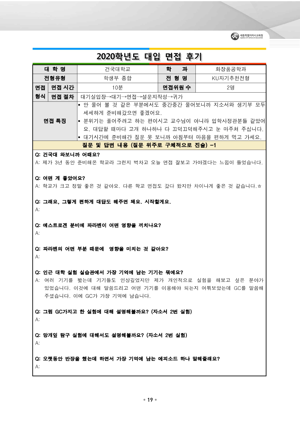 건국대학교 2021년 면접 기출 저번 포스팅에서는 2020년 면접 기출 내용을 포스팅 했었는데요 이번에는 2021년 면접 기출자료입니다. 모든 수험생들 화이팅~!!! 대부분의 질문 중 처음에 하는 질문