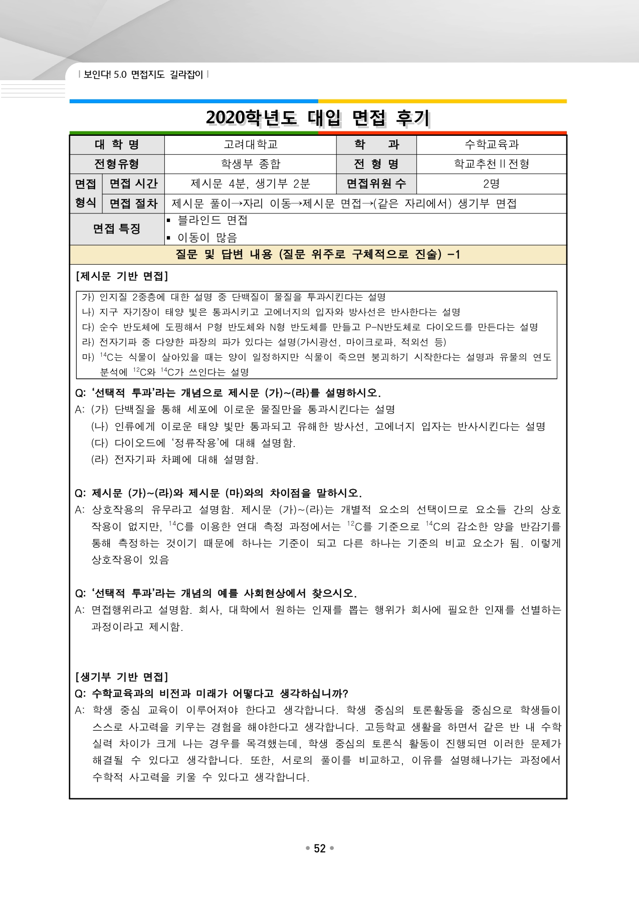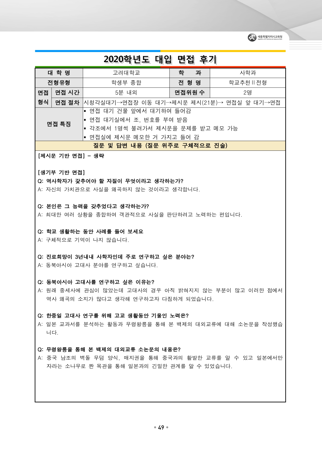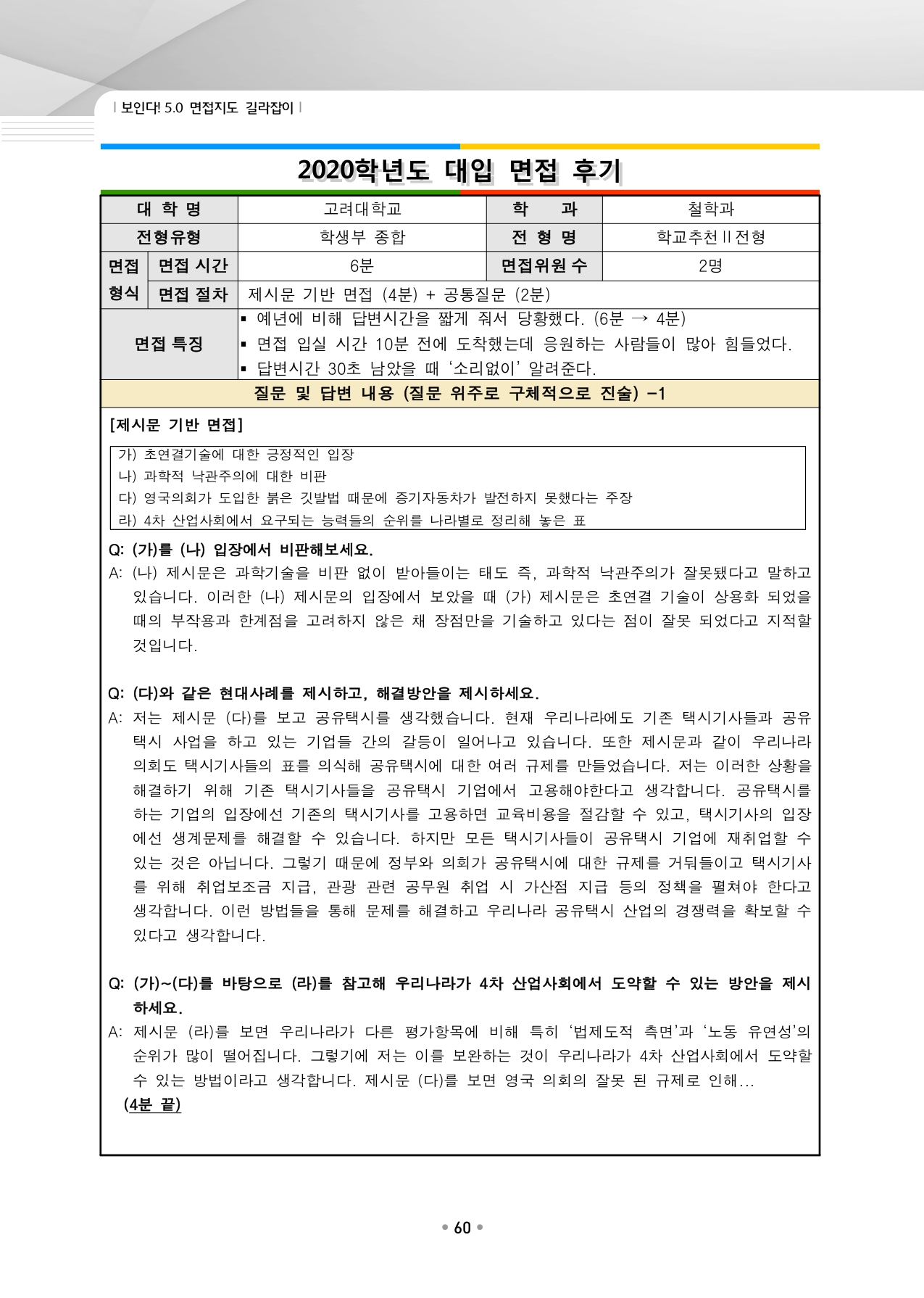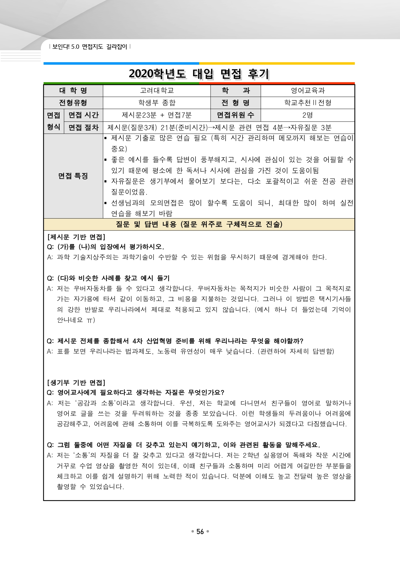 고려대학교 수시입학을 위한 역대 면접 질문들