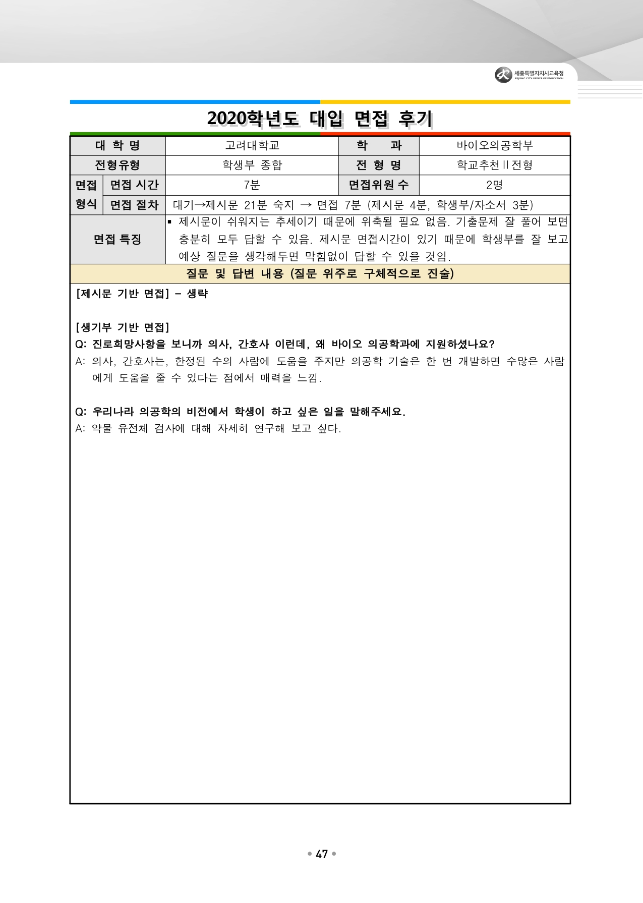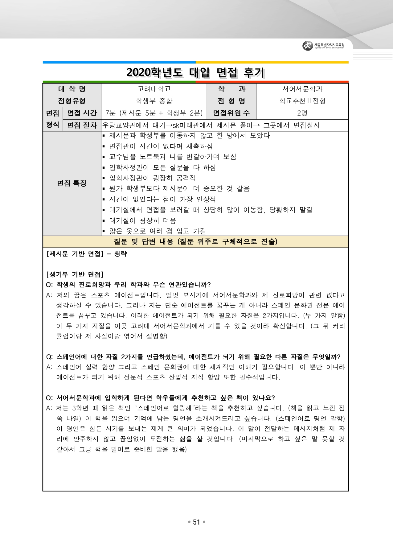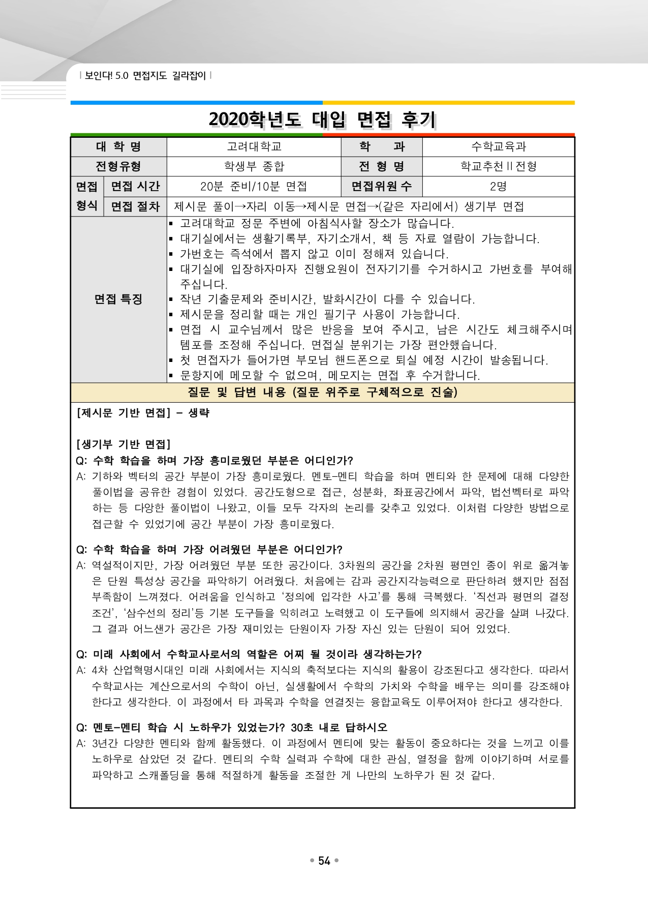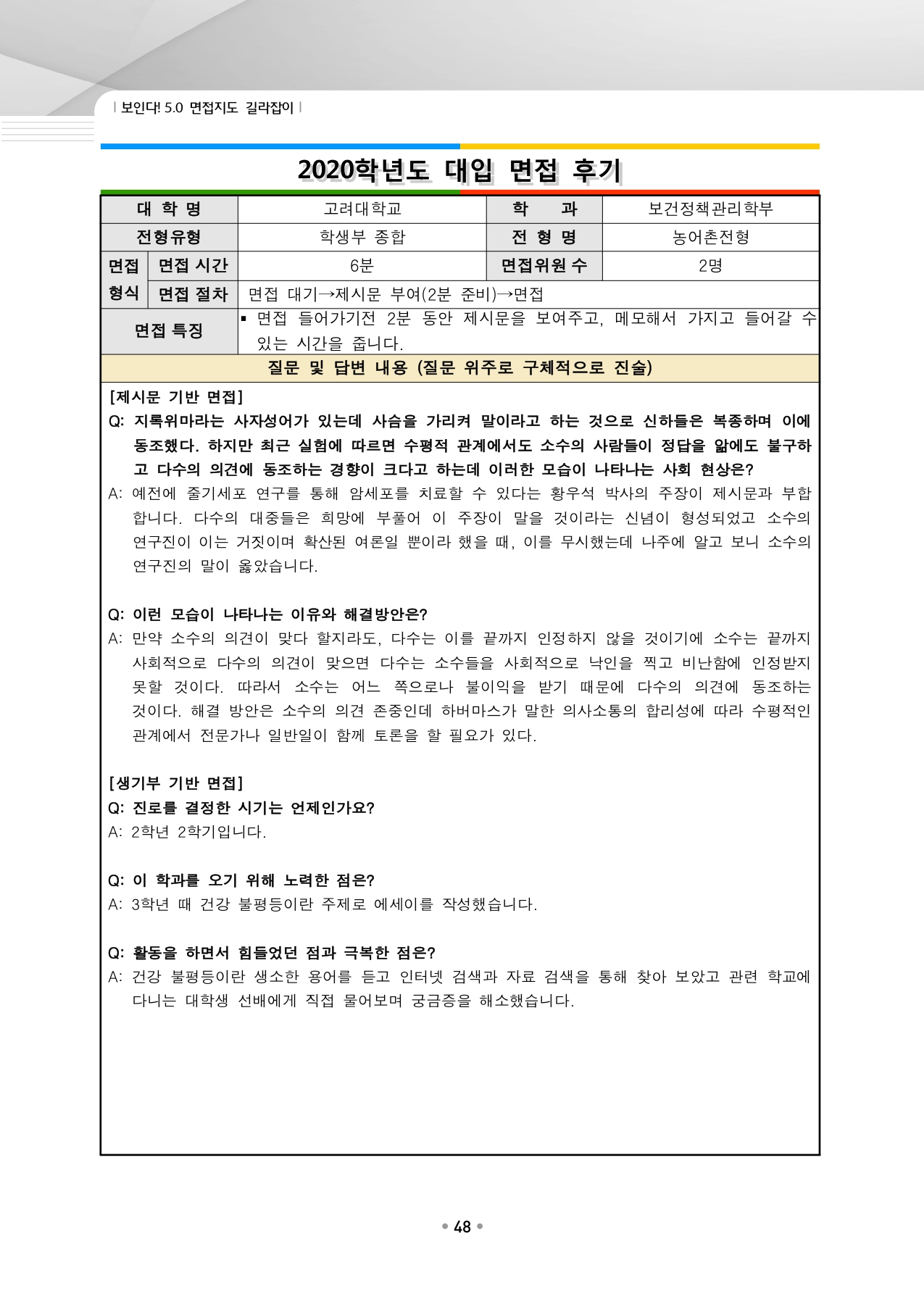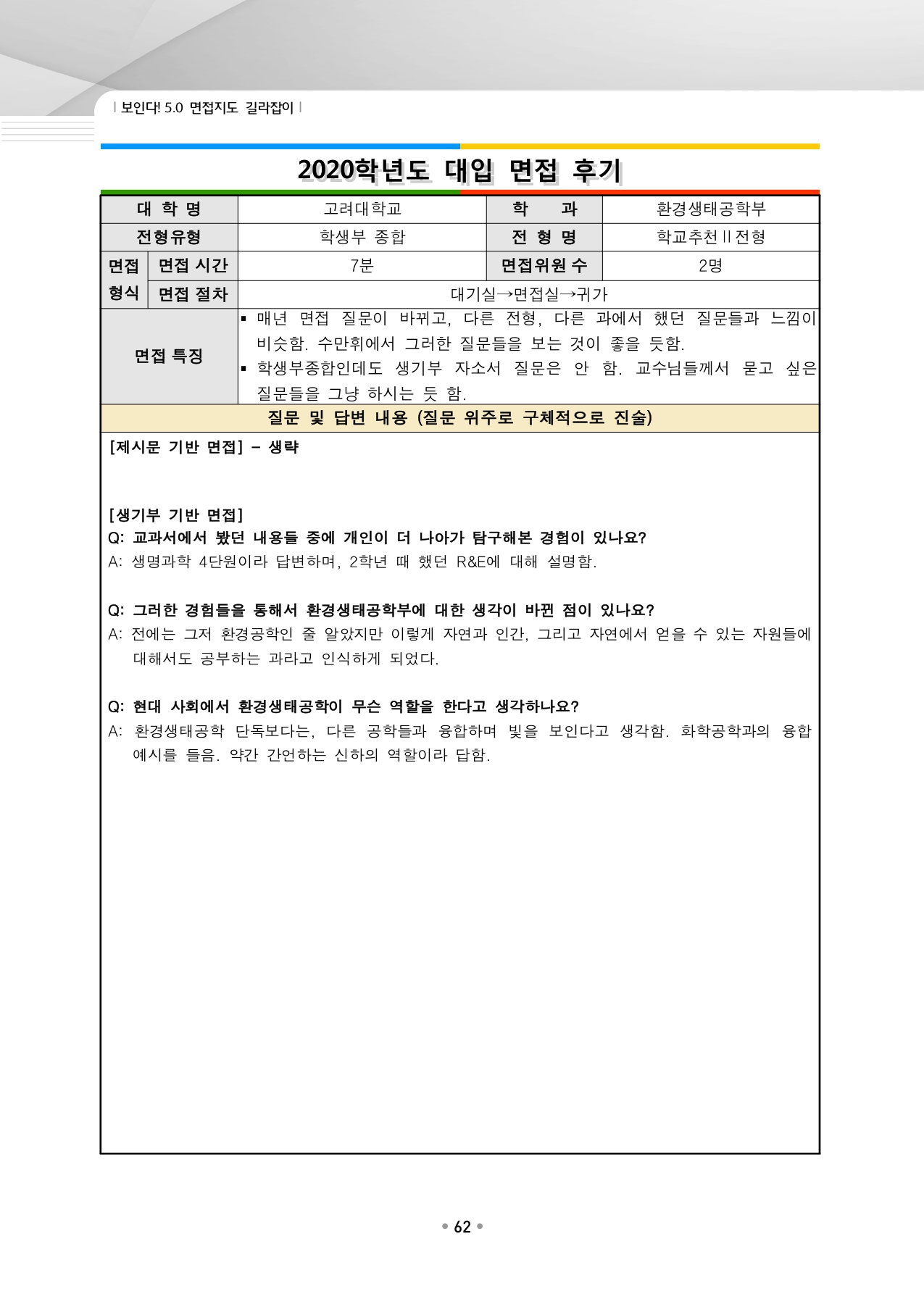 고려대학교 수시입학을 위한 역대 면접 질문들