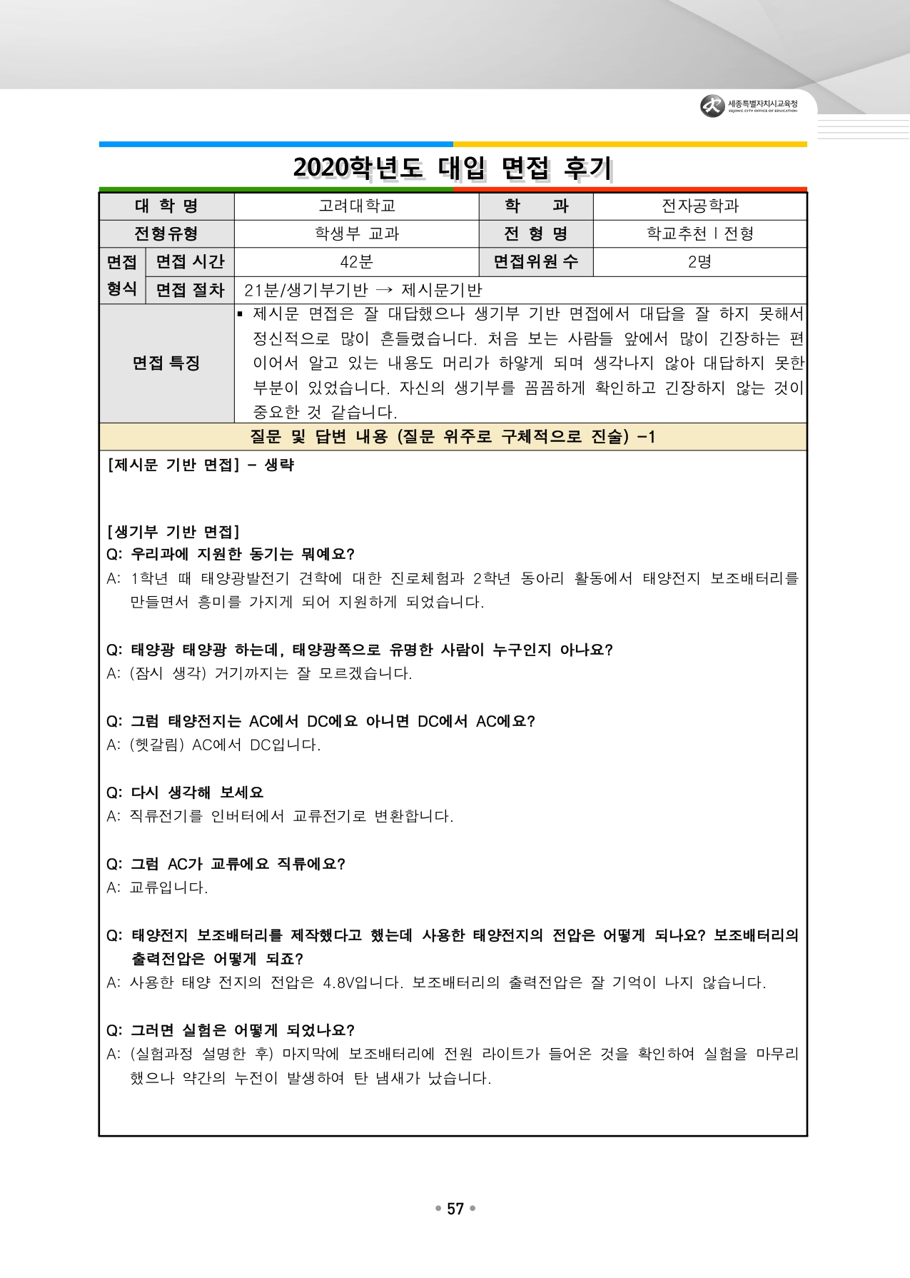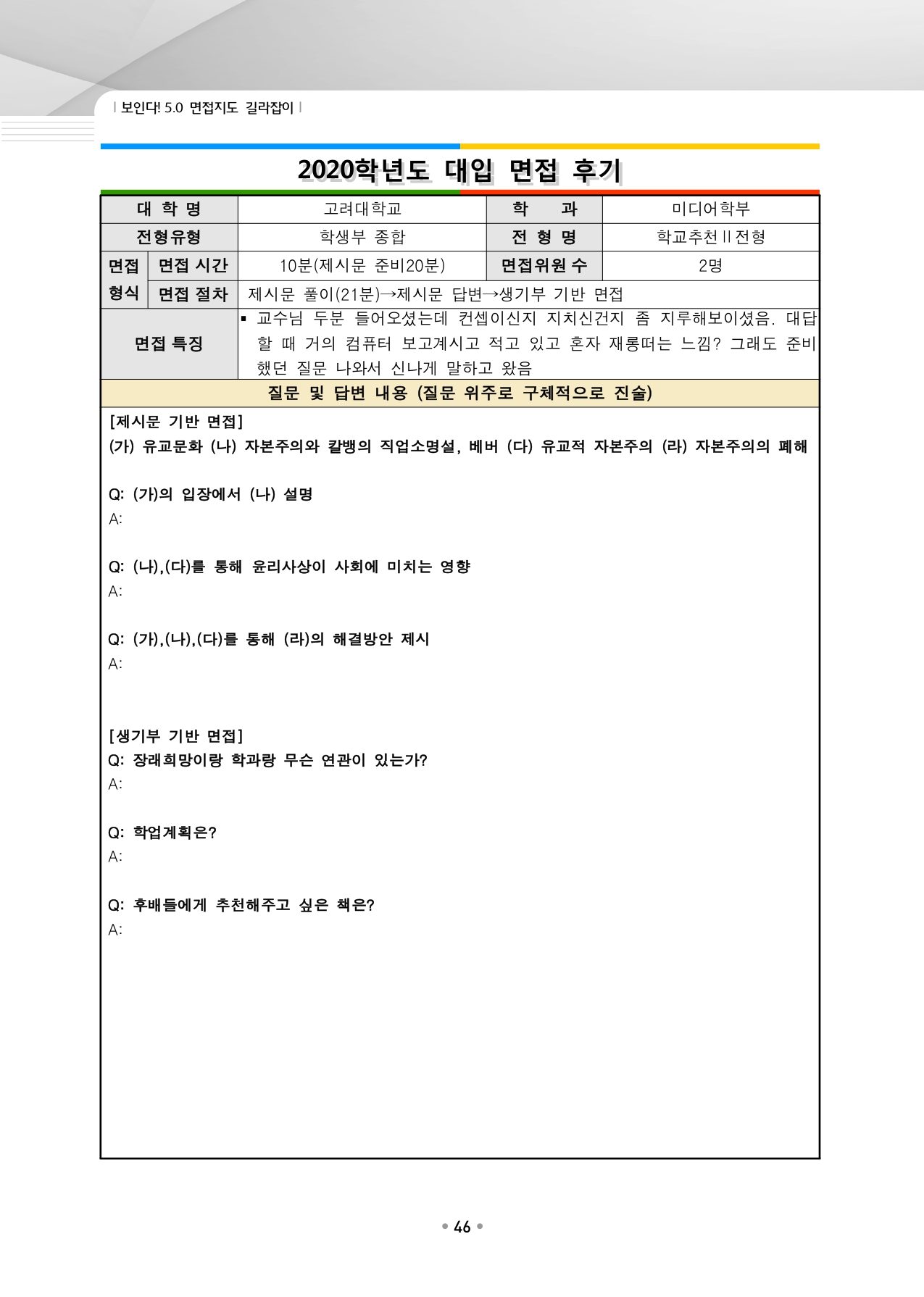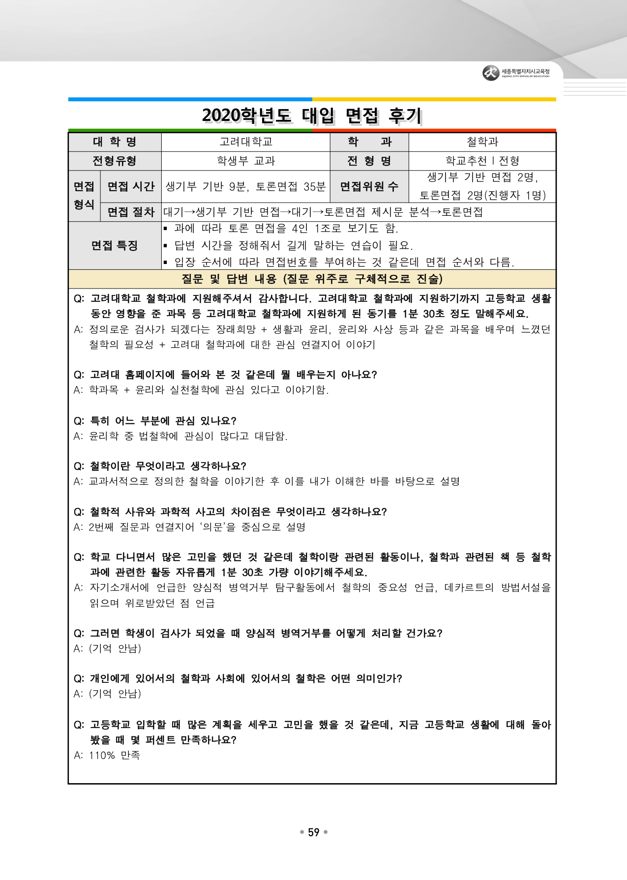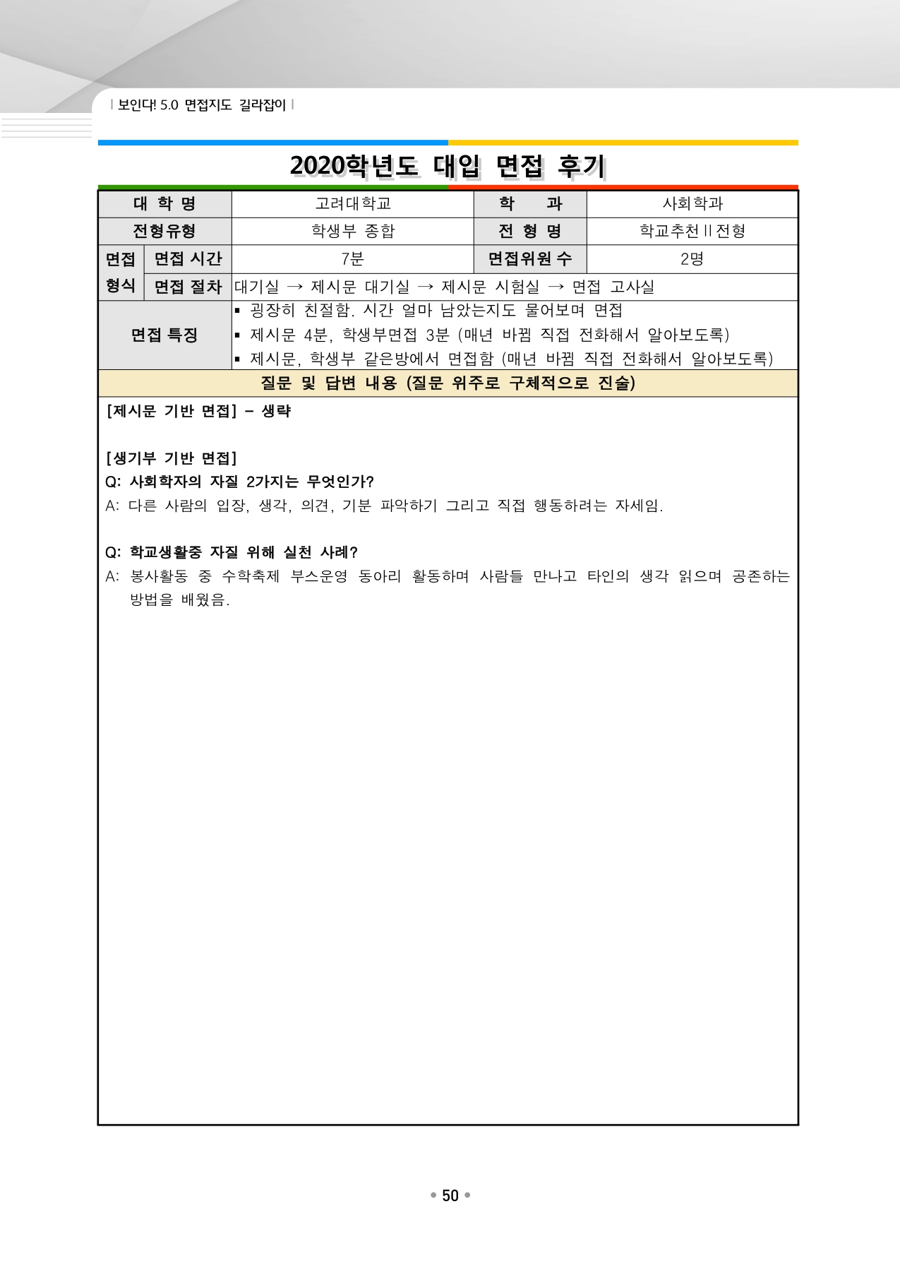 고려대학교 수시입학을 위한 역대 면접 질문들