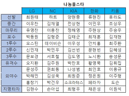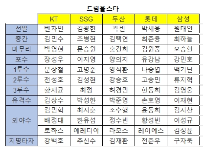 그 전에 5월 27일 오전 10:00 ~ 6월16일 오후 14:00까지 각 구단에서 추천한 총 120명의 선수 중에 어떤 선수를 올스타전에서 보고 싶은지 투표를 진행하니 관심있으신 야구팬들은 투표해 주세요~!