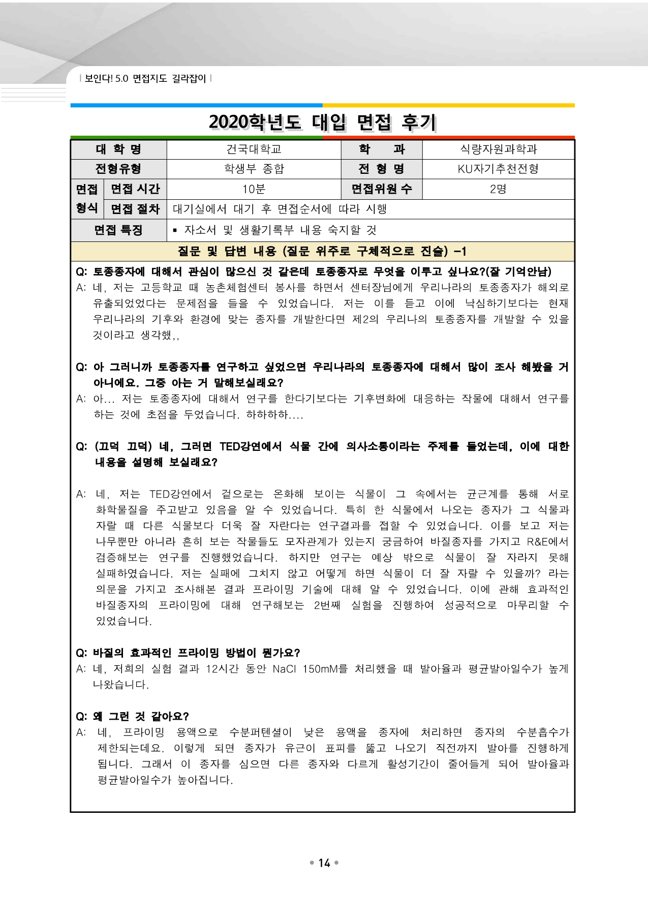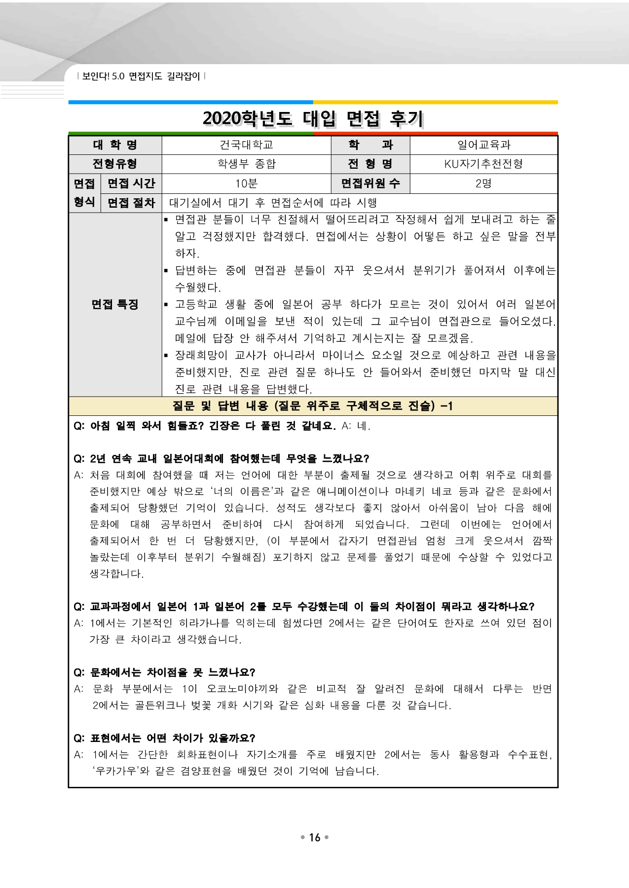 건국대학교 2021년 면접 기출 저번 포스팅에서는 2020년 면접 기출 내용을 포스팅 했었는데요 이번에는 2021년 면접 기출자료입니다. 모든 수험생들 화이팅~!!! 대부분의 질문 중 처음에 하는 질문